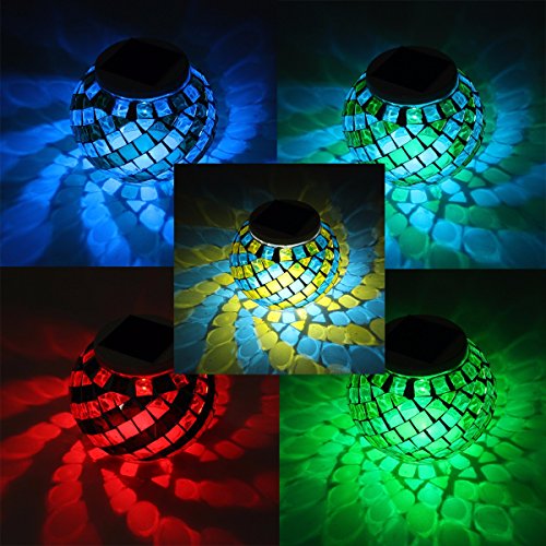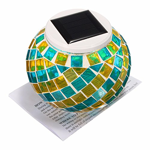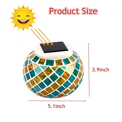 Glass Solar Table Light, GLISTENY Mosaic Glass Ball Garden Lights Color Changing Create Romance Wireless Waterproof Outdoor/Indoor Decoration Light for Party Home Patio Garden Tables Lawn