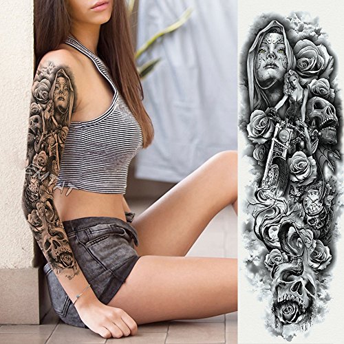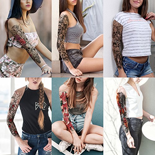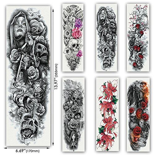 - 6 Sheets Large Full Arm Tattoos; Each sheet measures 7 inch by 19 inches.