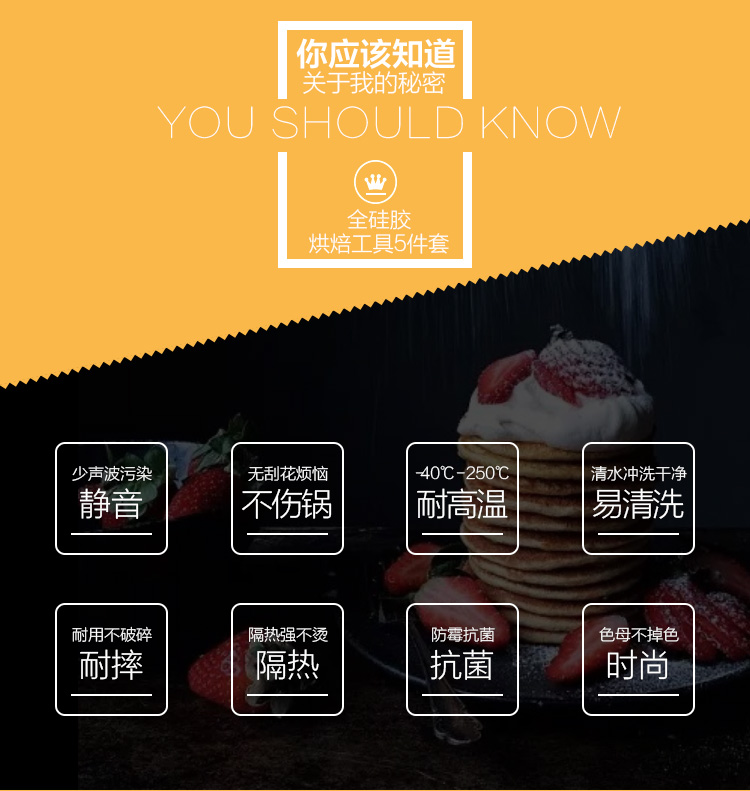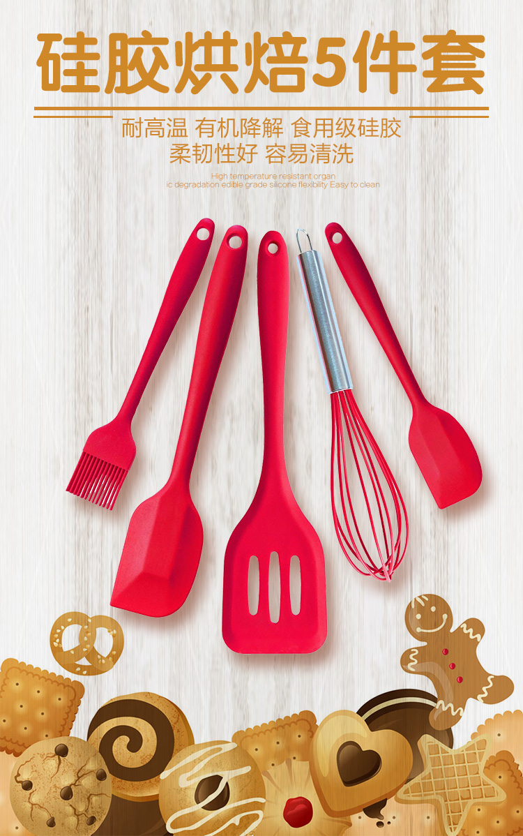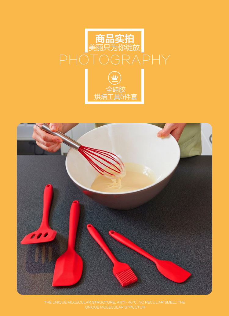 FDA Approved Silicone Cooking Tools Silicone Kitchen Utensils Set (5 Piece) in Hygienic Solid Coating