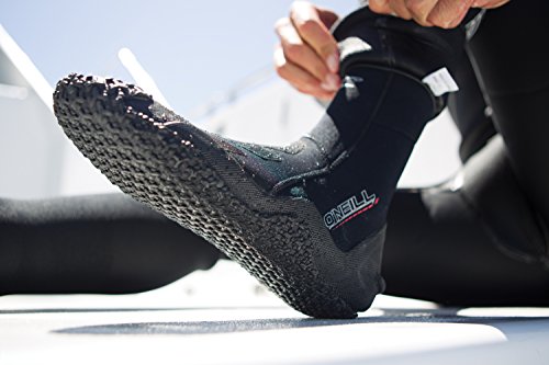 Studio : O'Neill Publisher : O'Neill Binding : Sports Product Description Water temperature rating of 60 degrees and up. Style is pull-on boot and thickness is 3mm. Neoprene type is 100% stretch. Seam construction is flatlock and zipper style: Not/Available. Additional features are fin tab on heel. Warranty: 1 year and manufacturer's part number: 1531. 0