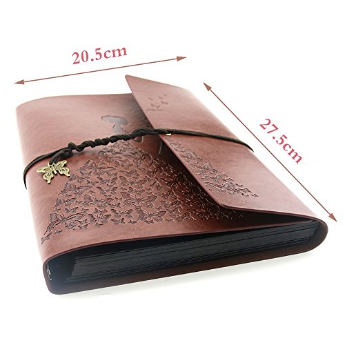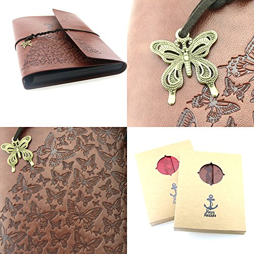 - UNIQUE EMBELLISHMENTS - The delicate, antique metal butterfly decoration makes the Scrapbook album more charming, cooperating with the leather rope, keeps your precious memories permanently. Come with number/letter stencil and photo corners.