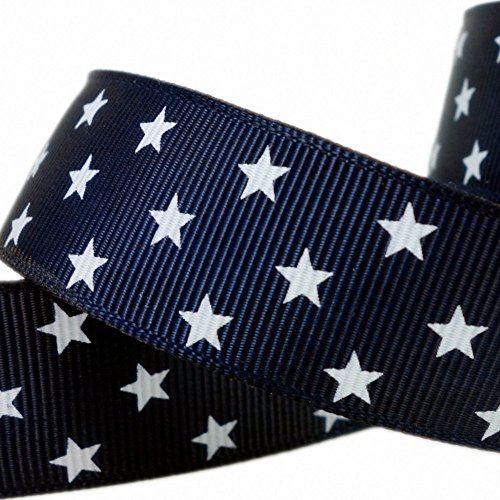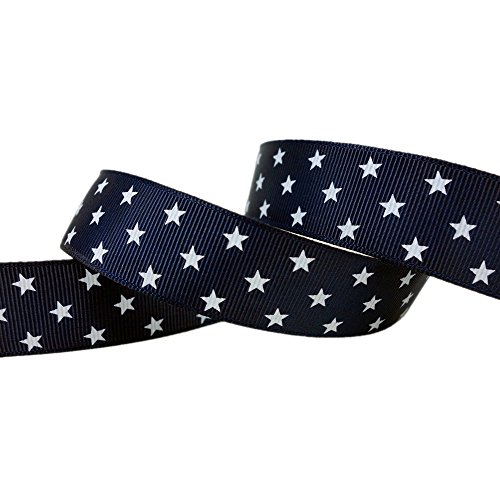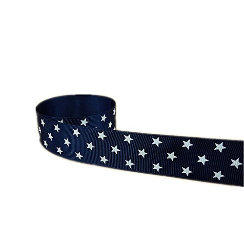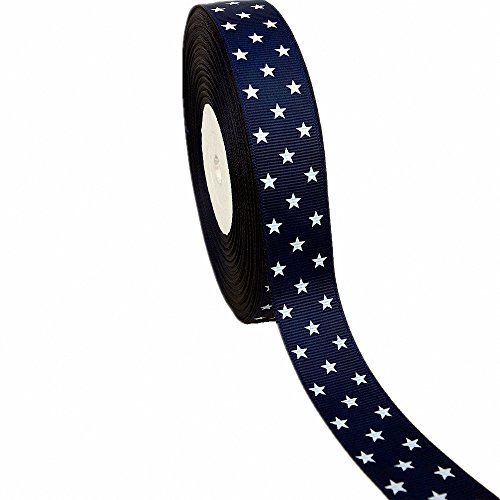 50yd 1" Navy Blue Solid Grosgrain Ribbon 4th of July White Patriotic Star Printed
