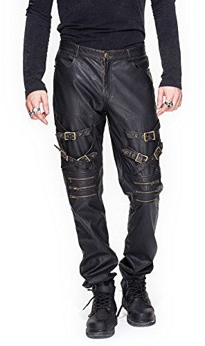 -. Title : オイリッシュな照り感とアンティークブロンズの金具がスチパン世界観を演出するロングパンツ スチームパンク ブラック&アンティークブロンズ メンズ Mサイズ PT03702M