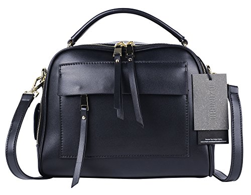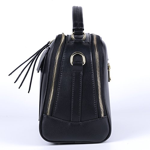 QZUnique Women's Cowhide Genuine Leather Fashion Cute Double Zipper Top Handle Bag