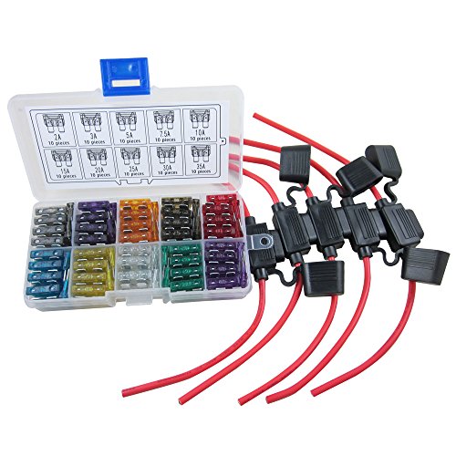 ZAOJIAO 12 AWG Gauge ATC/ATO Car Inline Water-resistant Fuse Holder(Pack of 5)+ 100PCs Auto Standard Blade Assorted Fuse