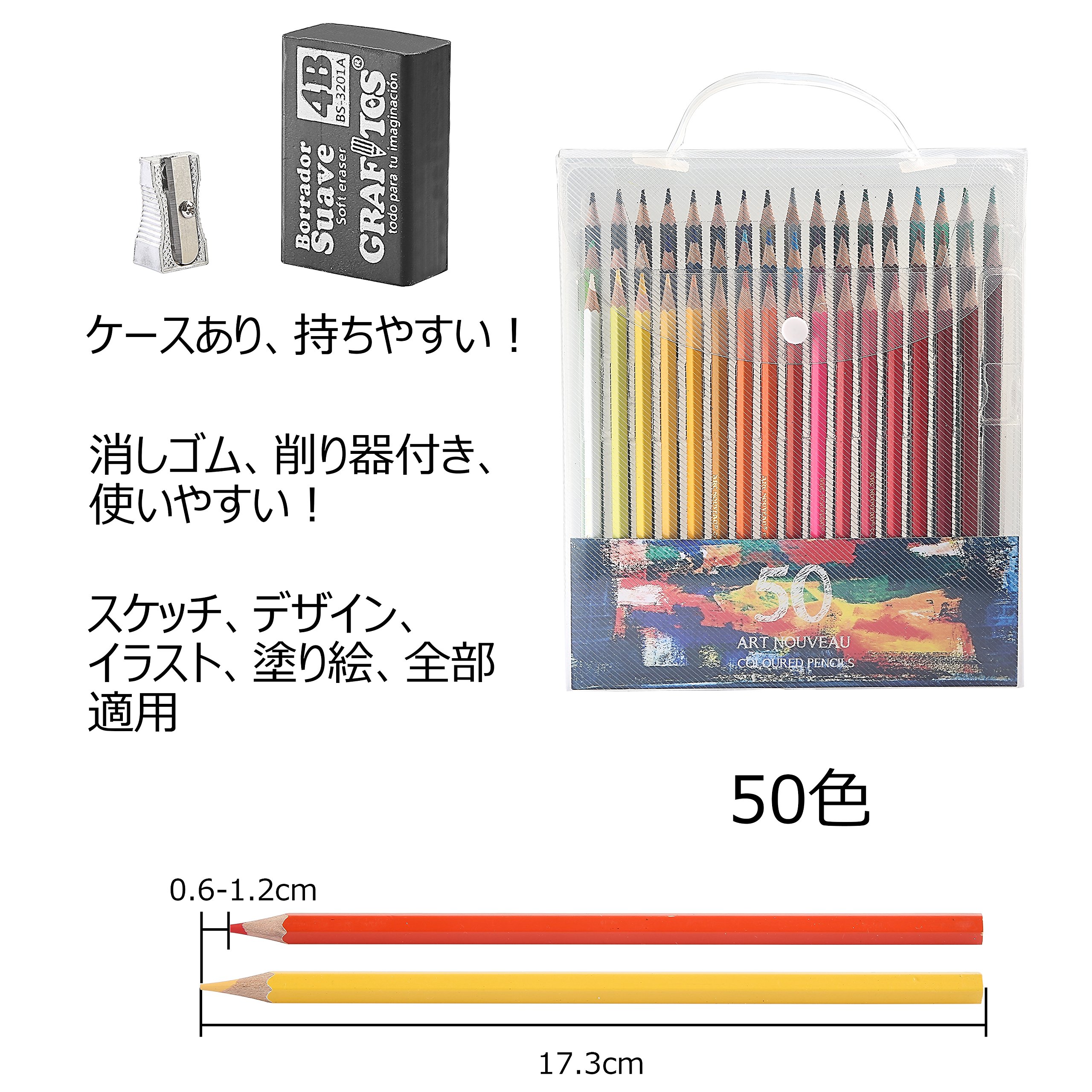 Specifications: 50 color set, art grip color pencil rich in high purity pigment components.
