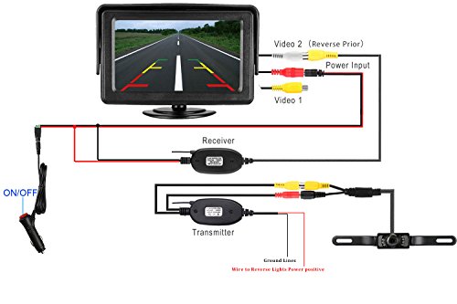 Monitor have V1/V2 two video inputs, V2 has priority, so normally the rear view camera wire to V2, you can wire another front/side camera to V1, when you driving, you can view front by V1,when you turn on reverse and off, the V2 will working automatically on and off.
