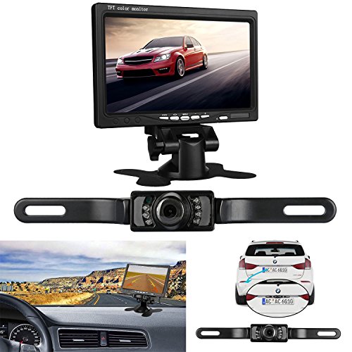 IP68 Waterproof license plate Color HD backup camera 135° viewing angle with 7 LED IR light Night Vision see clearly at night.
