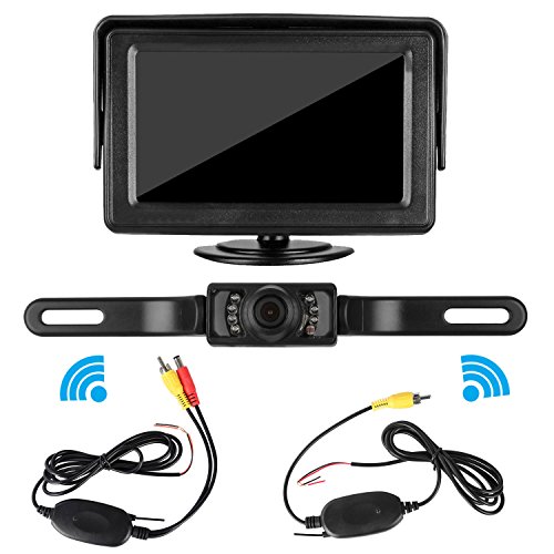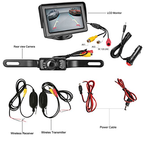 Wireless system easy to install don't need pull a long cables from camera to display .Wireless transmittion strongs signals working distance range over 45ft installed on vehicle and over 66 ft on no interference area. And vertically for mirror or normal viewing. Auto Water-Proof Camera Lens ,with 7 individual Infrared (IR) LED:it help your view still clearly at night or in bad weather.