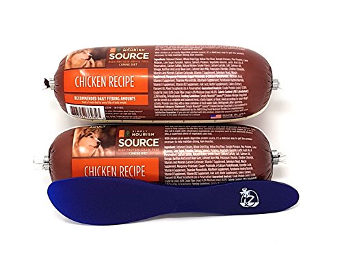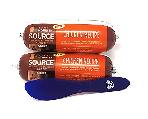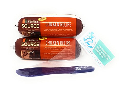 Simply Nourish Source adult canine diet dog food roll , 16 ounces, with Especiales Cosas spatula. Must be refrigerated after opening