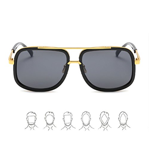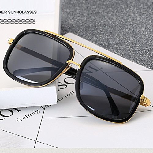 Tinksky Unisex Square Mirror Sunglasses Metal Frame Flat Top Vintage Sunglasses Women Men Glasses for beach outdoor activities (Black Franwork with Black-Changing Lens)