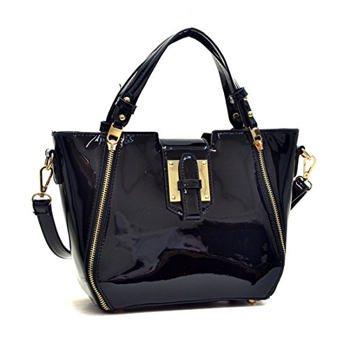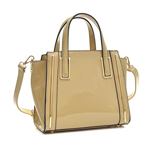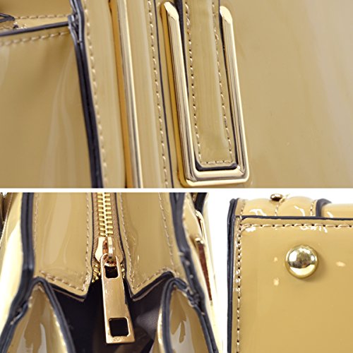 Totally classic with a exceptionally chic faux patent leather update, this high quality tote is the ultimate size for an every day companion while keeping your time and budget running at a premium. With a flat studded bottomed design for easy stand up, cotton feel beige fabric interior featuring zipper closure and open top pockets for simple organization, and removable shoulder strap, expect those winter nights to seem just a little warmer.Why Buy from Fashlets?