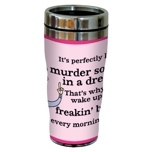 Tree-Free Greetings strives to use the most eco friendly materials and processes possible. Printed and assembled in the USA, The Tree-Free Greetings 16 Ounce Sip 'N Go Stainless Steel Lined Tumbler is vibrantly printed with hard to find hilarious Aunty Acid art by The Backland Studio Ltd. and is great for everyday use. It is reusable therefore eliminating any disposable paper or styrofoam cup waste. BPA free and Proposition 65 compliant, this beautiful and durable tumbler is stainless steel lined, resists condensation, and holds 16 ounces of your favorite hot or cold beverage. To preserve the quality of your tumbler, hand washing is required. The Tree-Free Greetings 16 Ounce Sip 'N Go Stainless Steel Lined Tumbler makes the perfect gift or souvenir for any occasion. Save trees and spread joy. Buy a Tree-Free earth-friendly gift today.Feature
