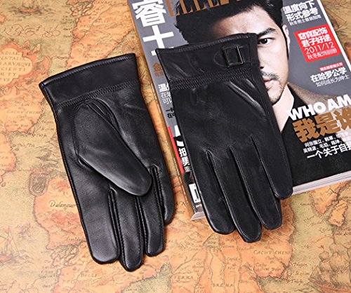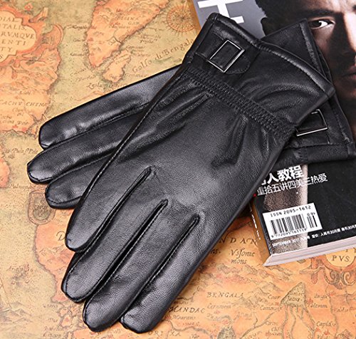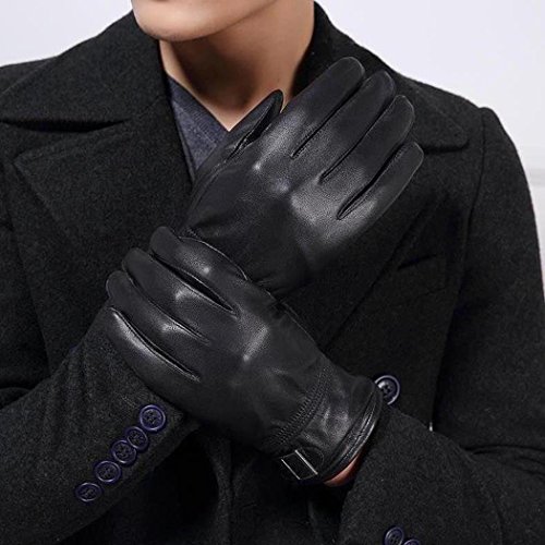 Note:Measure the hand you normally write with at its widest point,excluding the thumb. Our leather gloves are slim fit design. Gloves would be snug at first but leather will stretch. Made of real leather with warm and soft plush lining,offer a unique mix of practical design and directional style, keep your hand warm,and protect your hand when going outside in cold weather conditon.try this fashion warm gloves by HINY,enjoy your winter season. 0