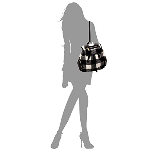 -. Feature : Size: 12.5" L x 12.5" W x 4.5". / Fleece fabric and synthetic leather. Gold-tone hardware. / Adjustable backpack straps and detachable shoulder straps. / Front flap zip pocket. Magnetic snaps over drawstring closure. / Lined inside compartment. Interior zip and slip pockets.