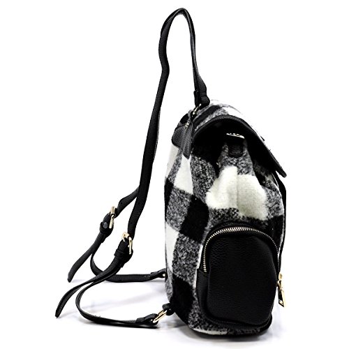 -. Title : Plaid Check Fleece Convertible Backpack Handbag