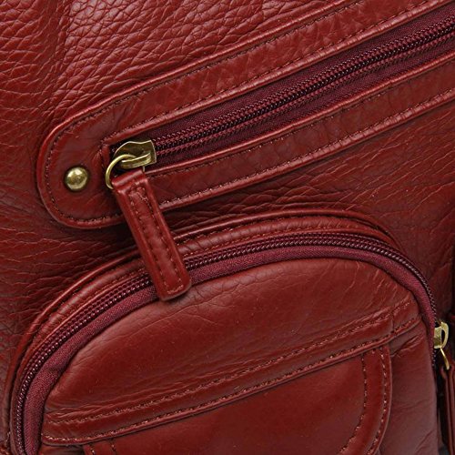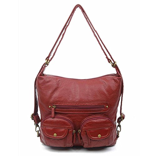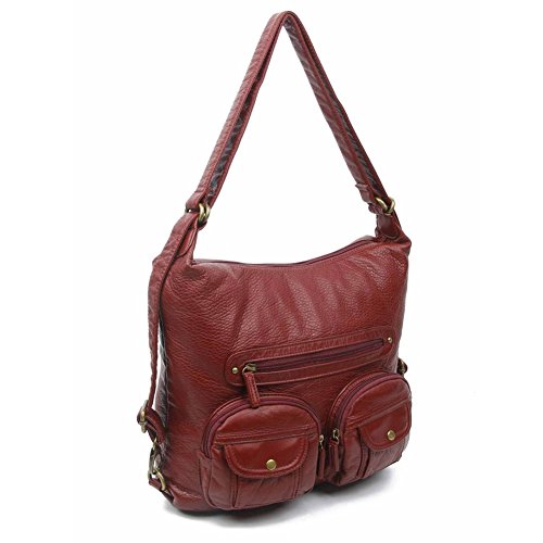 -. Brand : Ampere Creations -. Color : Burgundy -. Department : womens -. EAN : 0713012623364 -. Feature : Convertible Crossbody Backpack Burgundy shoulder bag purse. / he front of the purse has 2 zip around pockets, two snap pockets and a large zipper pocket. The back of the bag has another zipper pocket, too. This top opening purse has zipper closure. / Approximate Dimension: 15" L x 12" H x 4.5" W. / Adjustable straps up to 24 inches. Soft-vegan leather. / Brass toned hardware. -. ProductGroup : Apparel -. ProductTypeName : LAGE -. Size : Approximate Dimension: 15" L x 12" H x 4.5" W. -. Title : Convertible Crossbody Backpack Purse Shoulder Bag Satchel Burgundy -. UPC : 713012623364