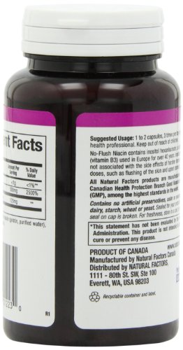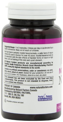 Studio : Natural Factors Publisher : Natural Factors Binding : Health and Beauty Product Description No Flush Niacin, technical name Inositol hexaniacinate, has been shown to exert the benefits of niacin without flushing or other side effects. It has been used in Europe for over 30 years to lower cholesterol and improve blood flow. Niacin works mainly by inhibiting the liver's production of cholesterol. Studies show that niacin not only lowers total cholesterol but also specifically "lowers LDL cholesterol, Lp(a) lipoprotein, triglyceride and fibrinogen levels while raising HDL cholesterol levels." A recent study in the American Journal of Cardiology showed niacin's effectiveness for raising HDL cholesterol: "In a head-to-head comparison study, niacin 2000 mg/day increased HDL-C more than gemfibrozil 1,200 mg/day, and decreased the total cholesterol-to-HDL-C ration, lipoprotein(a) and fibrinogen levels significantly more." It is also useful in the treatment of intermittent claudication (painful cramps in the calf muscle produced as when the oxygen supply to the muscle is decreased) and Reynard's phenomena (a painful response of the hands or feet to cold exposure due to constriction of blood vessels). 0