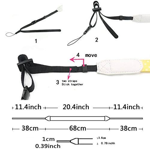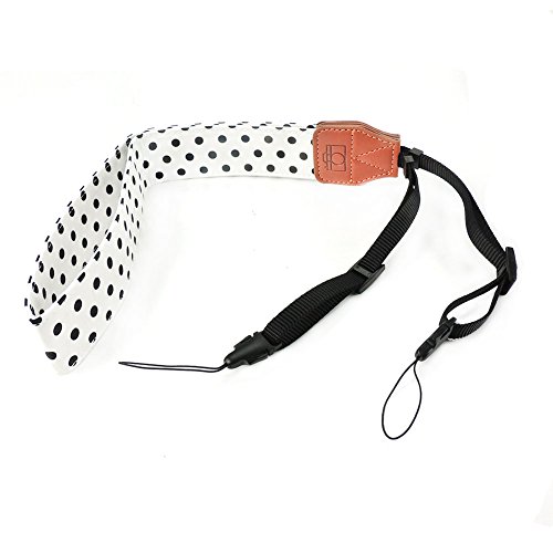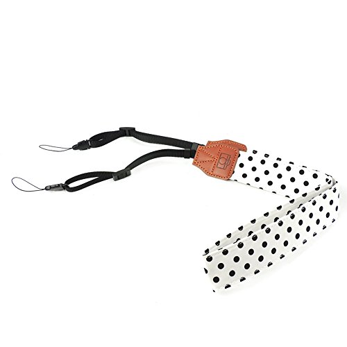 CHMETE Soft Cotton Polka Dots Universal Adjustable Camera Shoulder Neck Strap for DSLR Camera Polaroid Fujifilm (White)