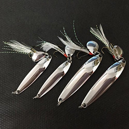 -. Title : Fishing Lure Spinner Bait,Woopower 4 Pcs Metal Sequins Fishing Lure Spoon Lure Hard Baits with Feather For Ocean,Lake ,River Fishing 5/7/10/13g