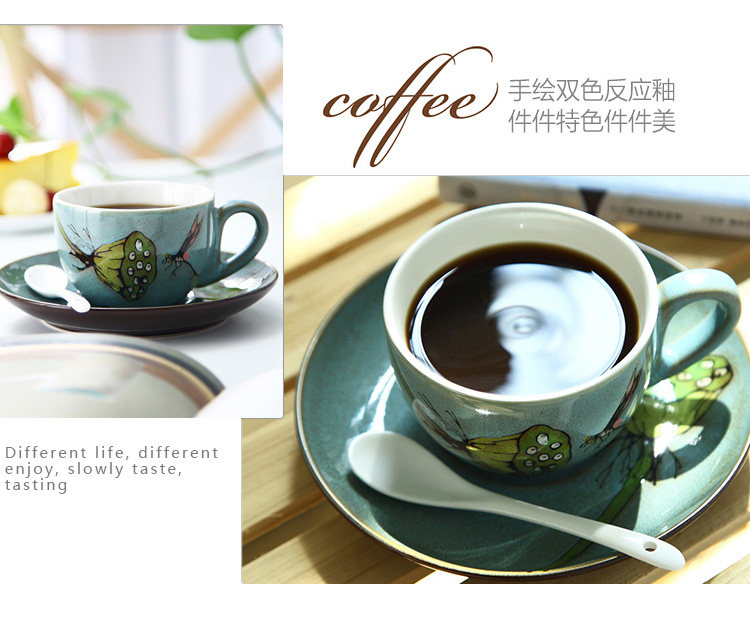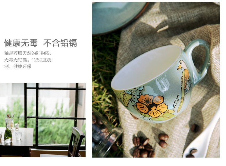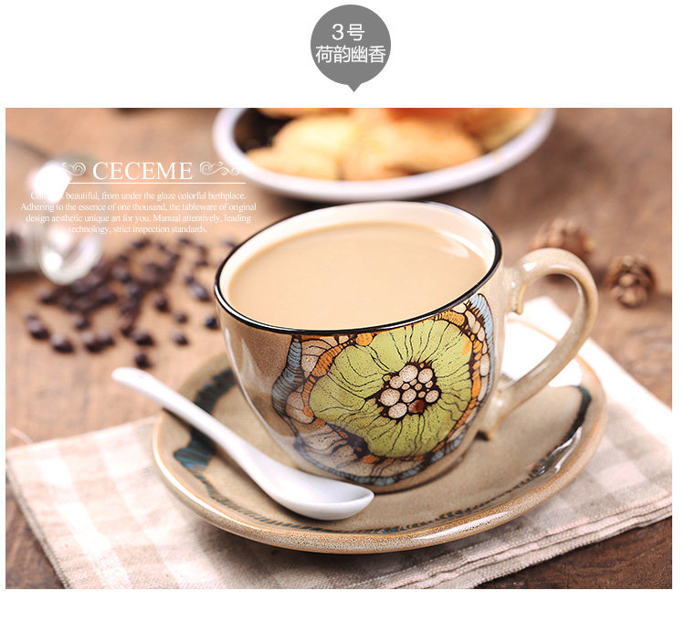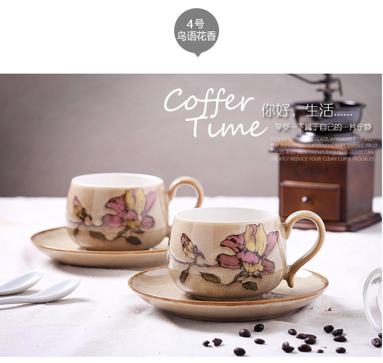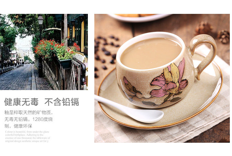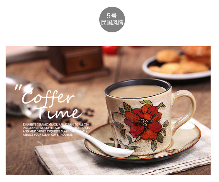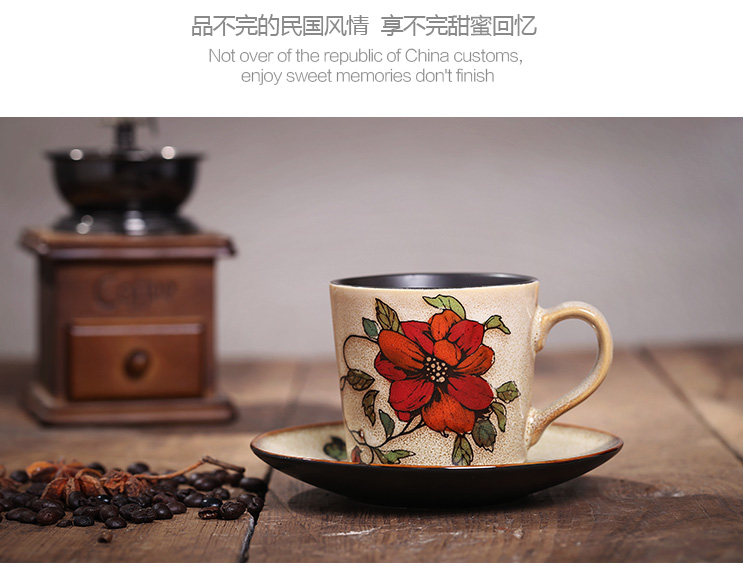 手绘咖啡杯碟套装创意欧美式咖啡杯个性复古家用陶瓷咖啡杯子带勺