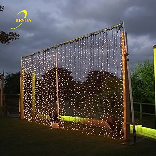 ZSTBT 300LED 9.84ft*9.84ft/3m*3m Window Curtain Lights Icicle Fairy Lights for Party Wedding Home Patio Lawn Garden (Warm White)