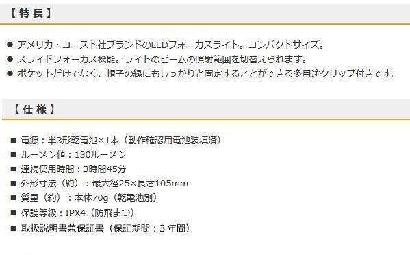 アメリカ・コースト社のコンパクトなLEDフォーカスライト。