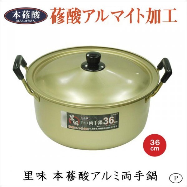 蓚酸アルマイト加工で、耐食性に優れた両手鍋36cmです。