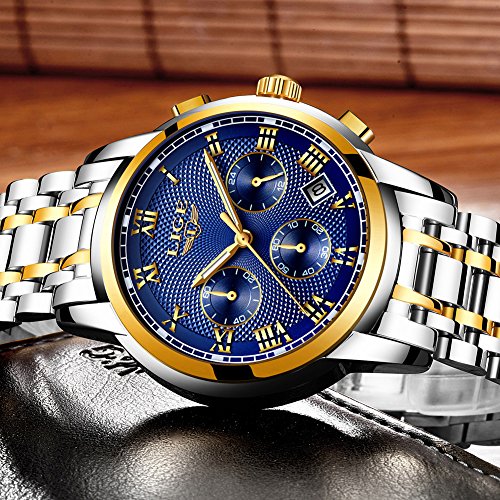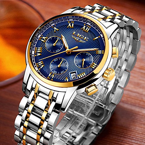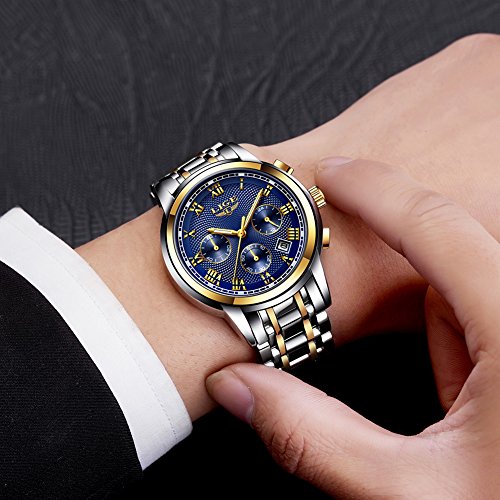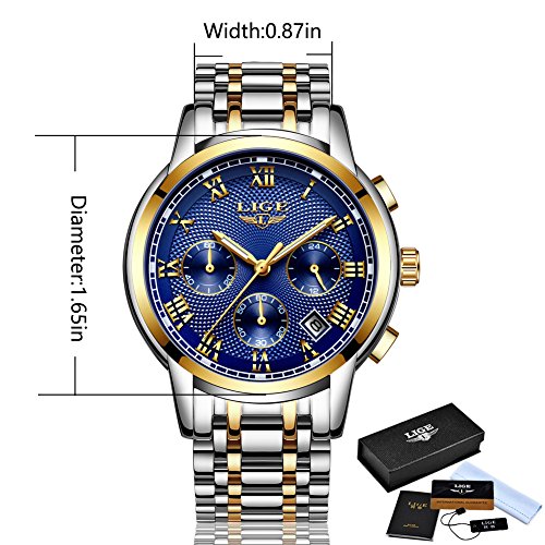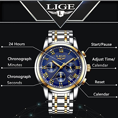 LIGE Mens Watches Sports Analog Quartz Watches Chronograph Waterproof Stainless Steel Men Wrist Watches With Auto Date,Blue