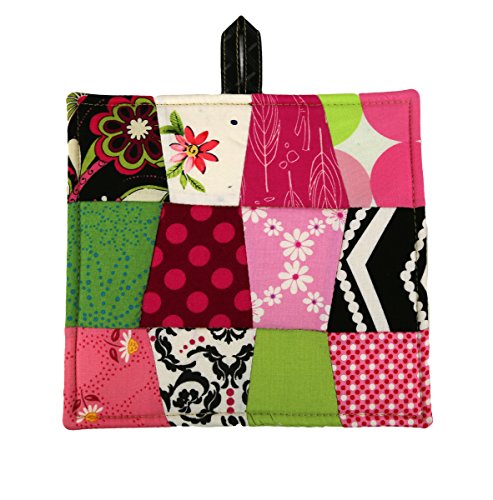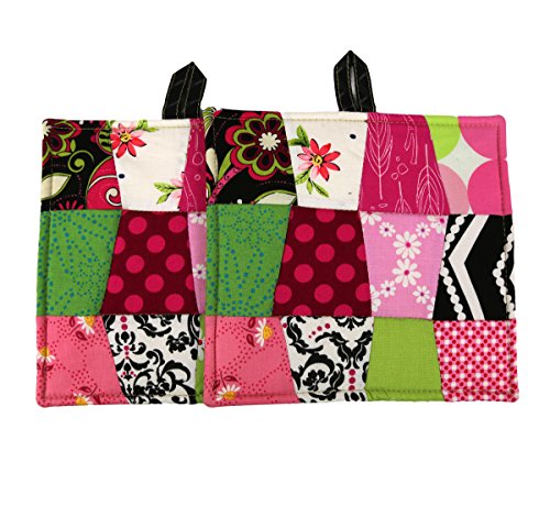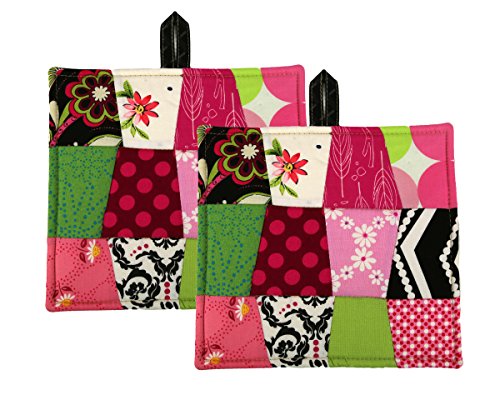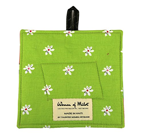 Claudine Pot Holder Set of 2 - Made of 100% Cotton And Double Lined - Pink, Green, Black, White Floral And Polk Dot Patterns - Fair Trade From Haiti