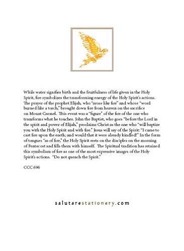 -. Binding : Office Product -. Brand : Salutare Stationery -. Feature : Sacrament of Confirmation Card / Image appeals to and inspires today's young adult. / Unique image combining the two symbols of Dove and Fire / Back of the card explains symbolism of fire for the Holy Spirit / Golden colored envelope included -. Label : Salutare Stationery -. Manufacturer : Salutare Stationery -. Model : 11011015 -. MPN : 11011015 -. PackageQuantity : 100 -. PartNumber : 11011015 -. ProductGroup : Office Product -. ProductTypeName : PAPER_PRODUCT -. Publisher : Salutare Stationery -. Studio : Salutare Stationery -. Title : Dove of Fire Confirmation Card
