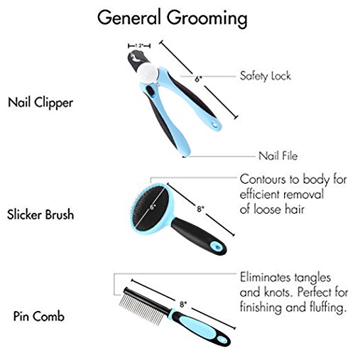 - Everyday Pet Grooming Set Consists of All Essential Tools: Deshedding Brush, Slicker Brush, Dematting Comb, Grooming Comb and Nail Clipper (Nail File included).