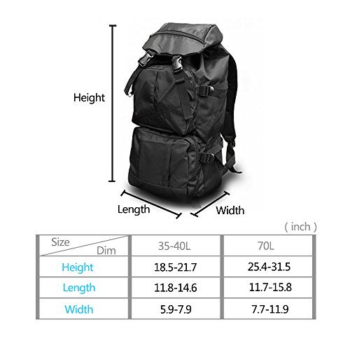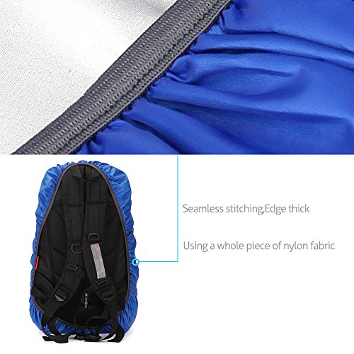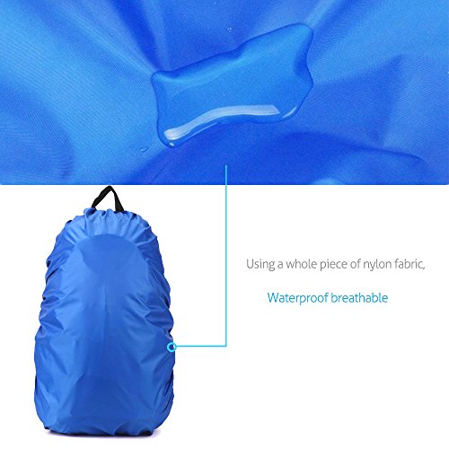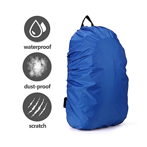 -. Feature : FOR BACKPACK SIZE & COLOR -- Size of (35-40L),70L. Color of blue, black. Please choose the right cover according to your backpack. / ADJUSTABLE DESIGN -- With elastic full circumference draw cord design, keeps cover cinched tight and able to adjust the size according to different backpacks. / EXTREME DURABILITY & SUPER THIN -- Made from 190 T Polyester Taffeta, seamless construction for weather-tight protection. Super durable, lightweight, rip-resistant that protecting backpack from dirt, mud scratch, sand. Internal waterproof coating keeps it away from water, rain, fog and not freeze in the snow. The fabric still remain flexible and perfect fitted. It's perfect for traveling, hiking, and other outdoor activities. / SUPERIOR WATERPROOF PROTECTION -- guaranteed not to let rain into your backpack. / MULTIPLE USE -- This cover can not only be used to protect your backpack away from water, wind, fog and some other bad weather. Also when student use it, it could protect your belongings from being stolen or lost. And if you like traveling or taking outdoor activities, it's easy to be found by others.