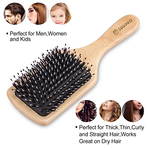 Hair Brush-Sosoon Boar Bristle Hairbrush for Long,Thick,Curly,Wavy,Dry or Damaged Hair,Reducing Hair Breakage and Frizzy,No More Tangle-Beard...