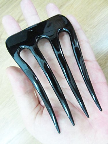 Marycrafts Simple Buffalo Horn Hair Comb, 4 Prongs Hair Fork, Hair Pin, Hairpin, Hair Accessory, Hair Toy Handmade 3.9"