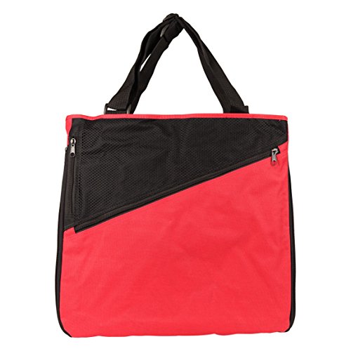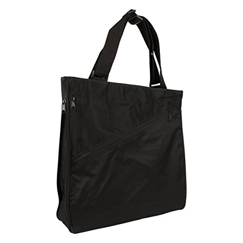 Product Description A very versatile tote bag that can be flattened and expanded, with a mesh and zippered front pocket. Large zippered pocket. Material: 600D Polyester/PVC Size: 15-3/4" x 15-1/2" x 1/2" (Expandable 4" Gusset) Features: Large zippered tote bag, expandable gusset, front zippered mesh pocket, front zippered large pocket and inside there's a zippered pouch for small valuables
