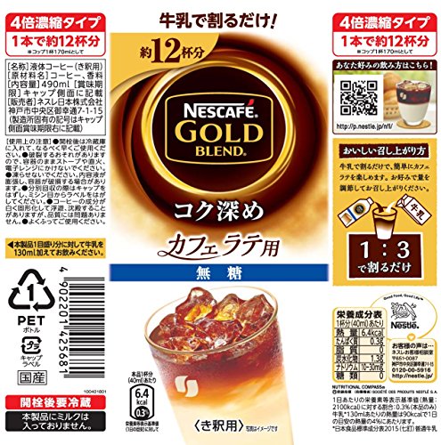 원본상품명: ネスカフェ ゴルドブレンド コク深め For Latte 無糖 490ml×6本