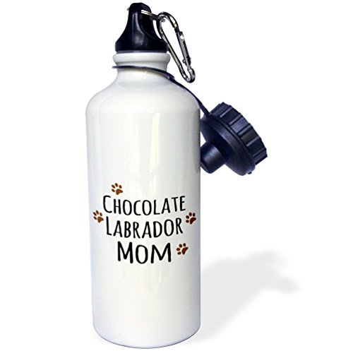 3dRose wb_154147_1 "Chocolate Labrador Dog Mom-Doggie by breed-Lab brown muddy paw prints-doggy lover-pet owner" Sports Water Bottle, 21 oz, White
