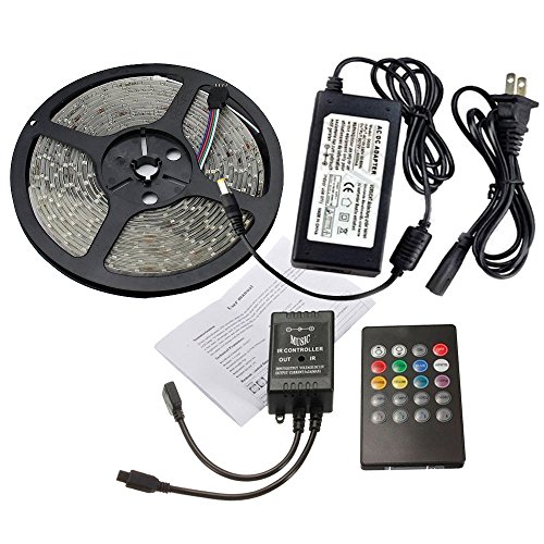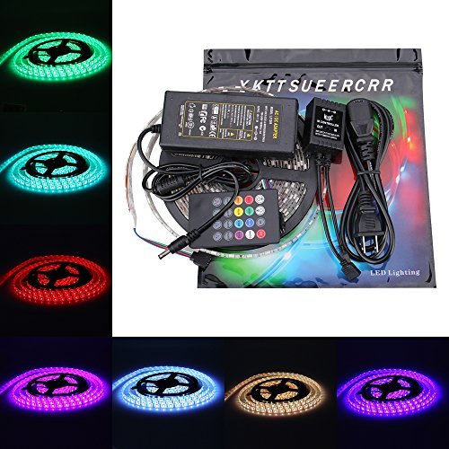 1x XKTTSUEERCRR 5050 SMD 16.4ft 5 Meter 300LEDs RGB Flexible Waterproof Strip Lighting with 20keys Music Sound Controller infrared remote