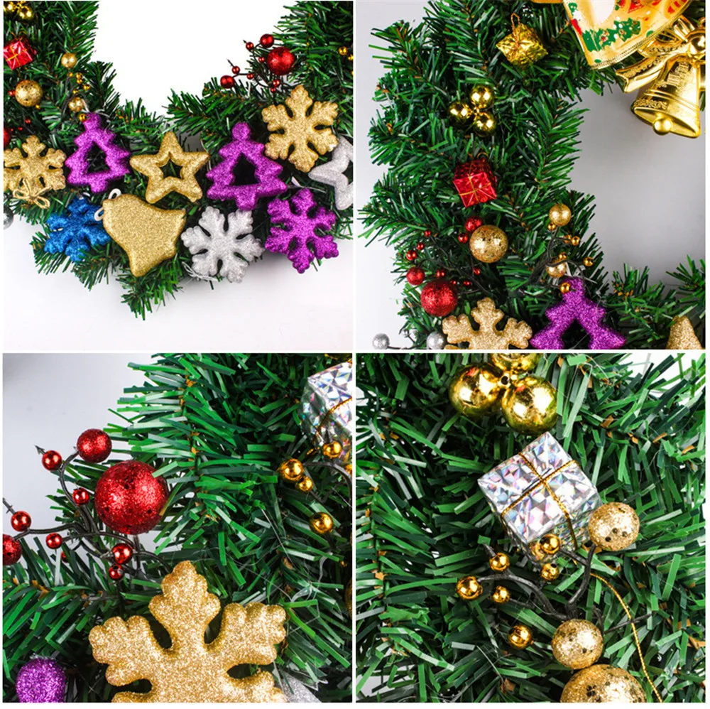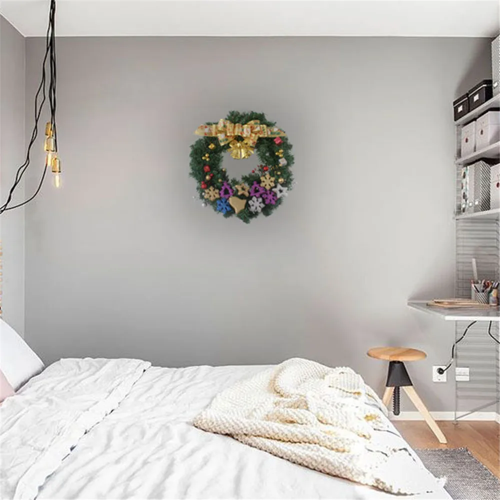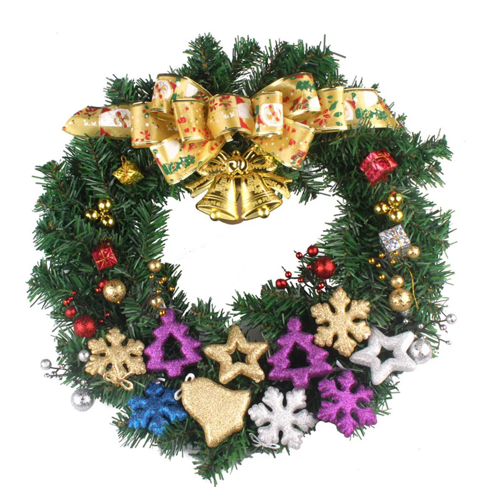 50cm Gold Bell Bow Hanging Wreath Christmas Party Decoration Wall Ornament Sets home farmhouse decoration accessories wreath