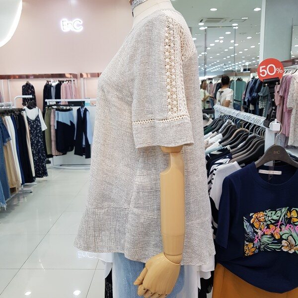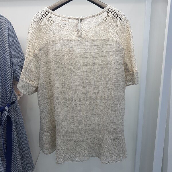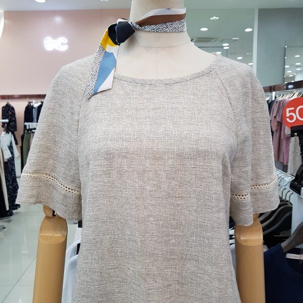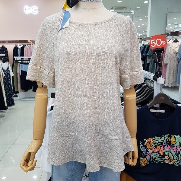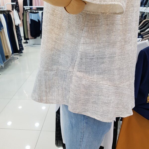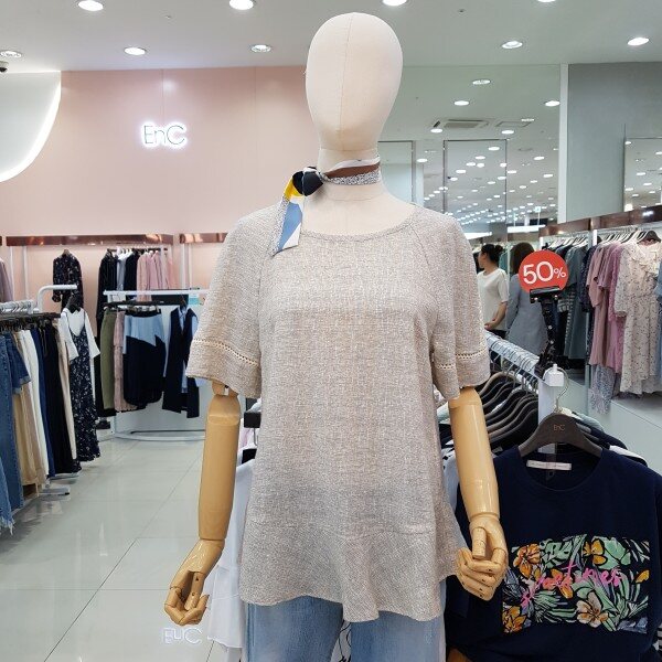 시원한 면소재감으로 한여름까지입으실수 있으며 어깨부분의 펀칭이과 디자인이 여성스러운 분위기를 연출할수 있는 아이템입니다