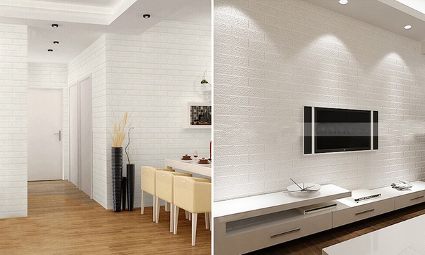 - Wallpaper textured to imitate brick walls.
