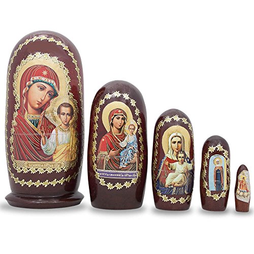 -. Title : 4.5'' Set of 5 Mary and Jesus Christian Icons Russian Wooden Nesting Dolls