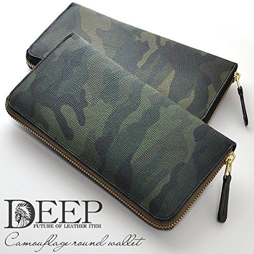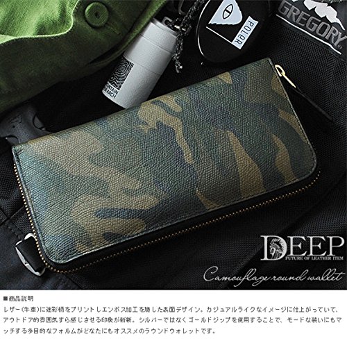 -. Title : [DEEP ディープ] 牛革 カモ柄 迷彩 長財布 ラウンドファスナー D-1007