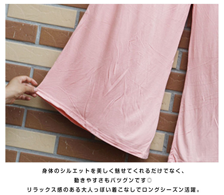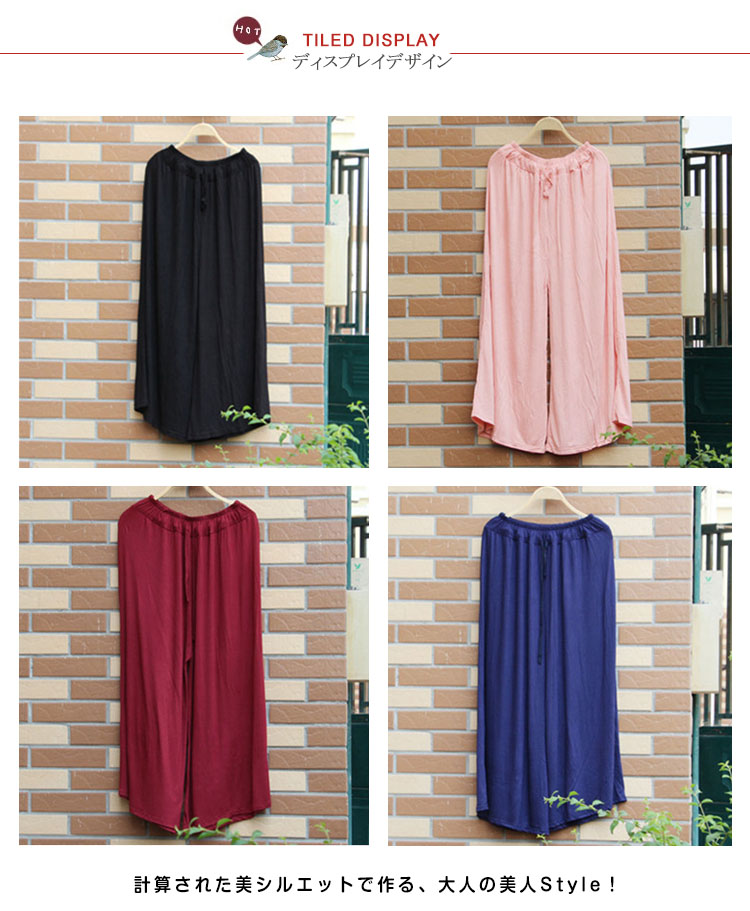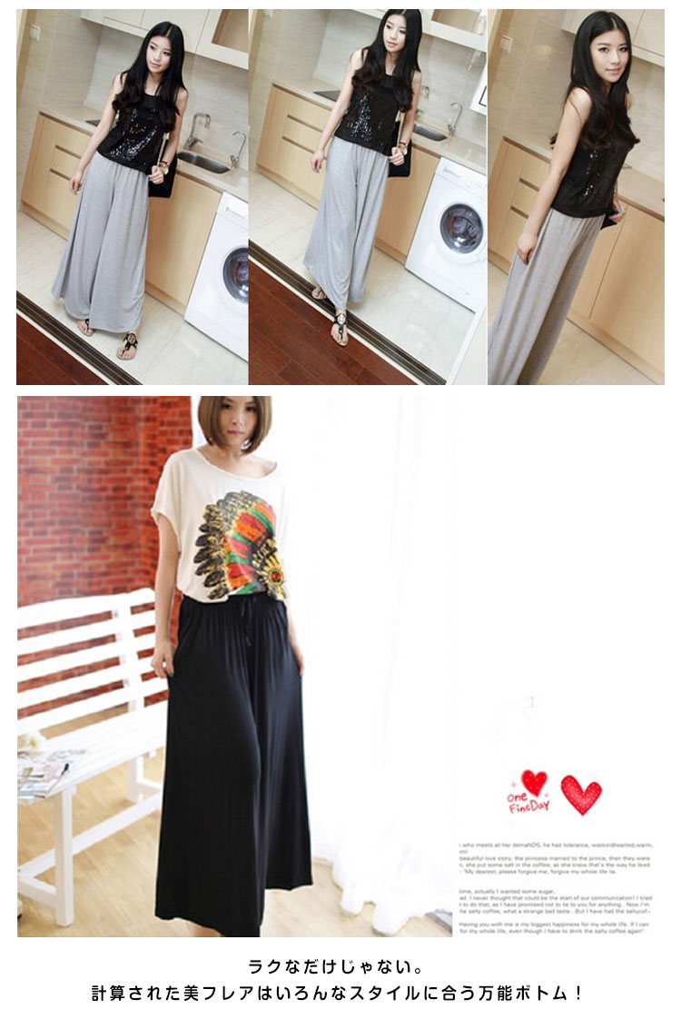 | 穿き心地がたまらなく心地良い♪楽ちん美脚のワイドフレアパンツ!スカートとパンツ2つの良いとこ取りをしたスカーチョデザイン。ラクなだけじゃない。計算された美フレアはいろんなスタイルに合う万能ボトム!計算された美シルエットで作る、大人の美人Style! | |