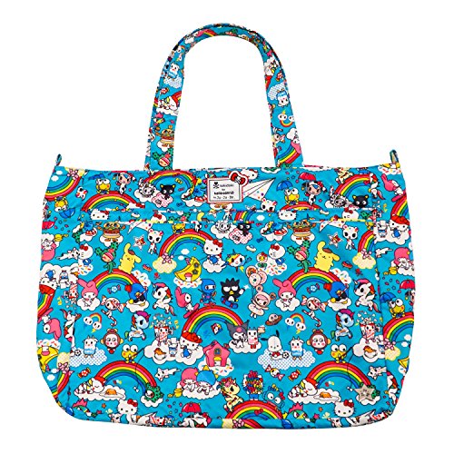The Ju-Ju-Be Hello Kitty Collection Super Be Zippered Tote Diaper Bag is chic, smart, ultra-light and functional with extra pockets for added versatility. This tote has SUPER powers! It’s SUPER cute! It’s SUPER light! It’s SUPER stuffable! It’s SUPER versatile! Does it have X-Ray vision? No, but its zippered top will help you get through the X-ray machine at the airport faster than a speeding bullet. The Super Be’s inner lining is protected with an Agion natural antimicrobial treatment that inhibits and reduces the growth of odor-causing bacteria, mold and mildew. The outer fabric is treated with Teflon fabric protector, making it easy to repel stains and keep the Super Be clean. In addition to the spacious interior, the Super Be has (7) additional pockets for keeping you ultra-organized and a 12-inch drop strap. The front of the Super Be has (3) extra pockets, (2) of which are tall enough to hide your water bottles, and a center zipper pocket for your smartphone or car keys. The main zippered section is large enough for diapers, wipes, extra clothes, soft toys and other items needed. Inside the bag there are (2) interior mesh pockets and an extra-long attached key clip. The large back pocket is perfect for magazines or your children's books and is designed with a snap closure. This bag is machine washable and measures 18-inches by 15-inches by 5.5-inches in size. The Peek A Bow print is a red and white bow pattern on a white background with red lining. The print is accented by silver, metal hardware. All Ju-Ju-Be items come with a Lifetime Limited Warranty against manufacturing defects when purchased from an Authorized Ju-Ju-Be Dealer. Authorized Dealers can be found in the images. Founded in 2005, Ju-Ju-Be is a Southern California company that uses science, style, and attitude to create diaper bags, purses and other fashionable accessories. Ju-Ju-Be assimilated the most advanced technology possible to create a stylish and intelligent product line that's unrivaled in the industry.Feature