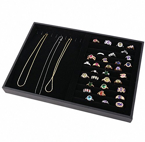 -. Title : MyJell Black Velvet Jewelry Display Tray Necklace Earring Ring Jewelry Display Showcase Organizer Holder