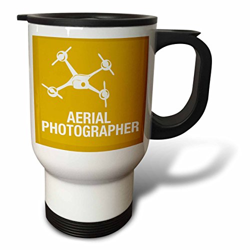 3dRose tm_179926_1 Yellow and Orange Drone, Aerial Photographer Stainless Steel Travel Mug, 14 oz, White