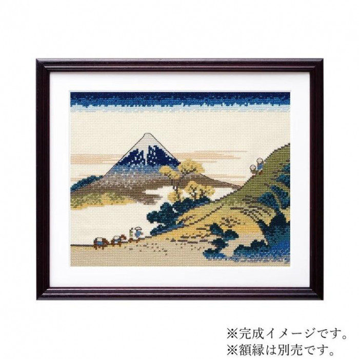葛飾北斎画 錦絵「富嶽三十六景」四十六図より技法は、すべてクロスステッチを使用しています。技術レベルは、上級者向です。