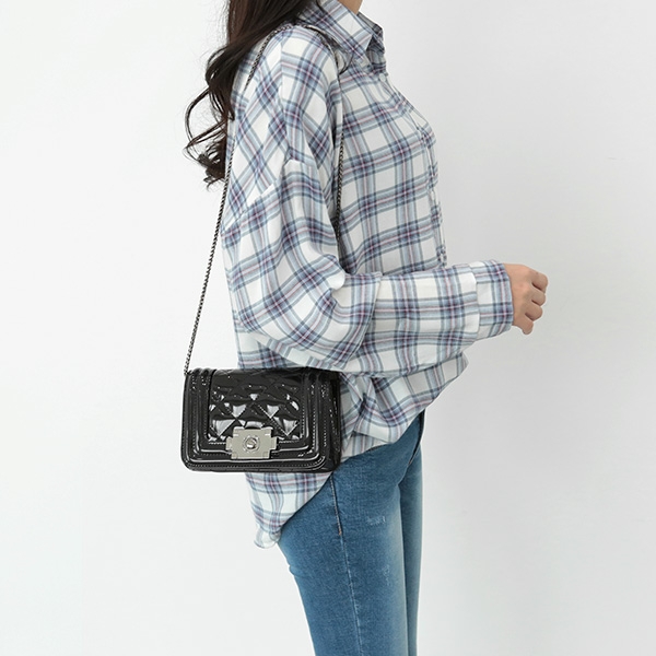 |  미니 체인 크로스백을 소개합니다. 멋스러운 색감과 광택으로 세련된 무드의 미니백으로 미니멀한 디자인과 가벼운 무게감으로 활용도 높은 아이템이랍니다! 고급스러운 체인이 포인트가 되어 다양한 룩에 포인트를 주기 좋아 추천해드려용!! 은은한 펄과 광택처리가 매력적인 미니 사이즈 체인 크로스백! 기분 전환하고 싶은날 귀여운 포인트가 되어줄 아이템이랍니다. 상세페이지 꼼꼼히 확인 후 굿 초이스해주세요~       | COLOR | 블랙 / 골드 / 그린 / 블루 / 핑크 / 레드 | | 제품 색상은 모니터에 따라 실제 색상과 차이가 있을 수 있습니다. | | | | FABRIC | 에나멜+합성피혁 | | | | PRODUCT ION | 제조국 / 국내 | | 품질보증기준 / 소비자분쟁 해결기준에 따름 | | A/S 책임자 및 고객센터 / 감성가방 | | | | SIZE INFO | 사이즈는 측정 방법에 따라 1~2cm의 차이가 있을 수 있습니다. | | 스트랩 길이는 연결 고리를 제외한 길이이며, 최대 길이입니다. | | (단위:cm, g) | | 가로 길이 | 세로 길이 | 너비 | 손잡이 높이 | 스트랩 길이 | 무게 | | 18.5 | 12 | 6.5 | - | 55(조절x) | 320 |  |